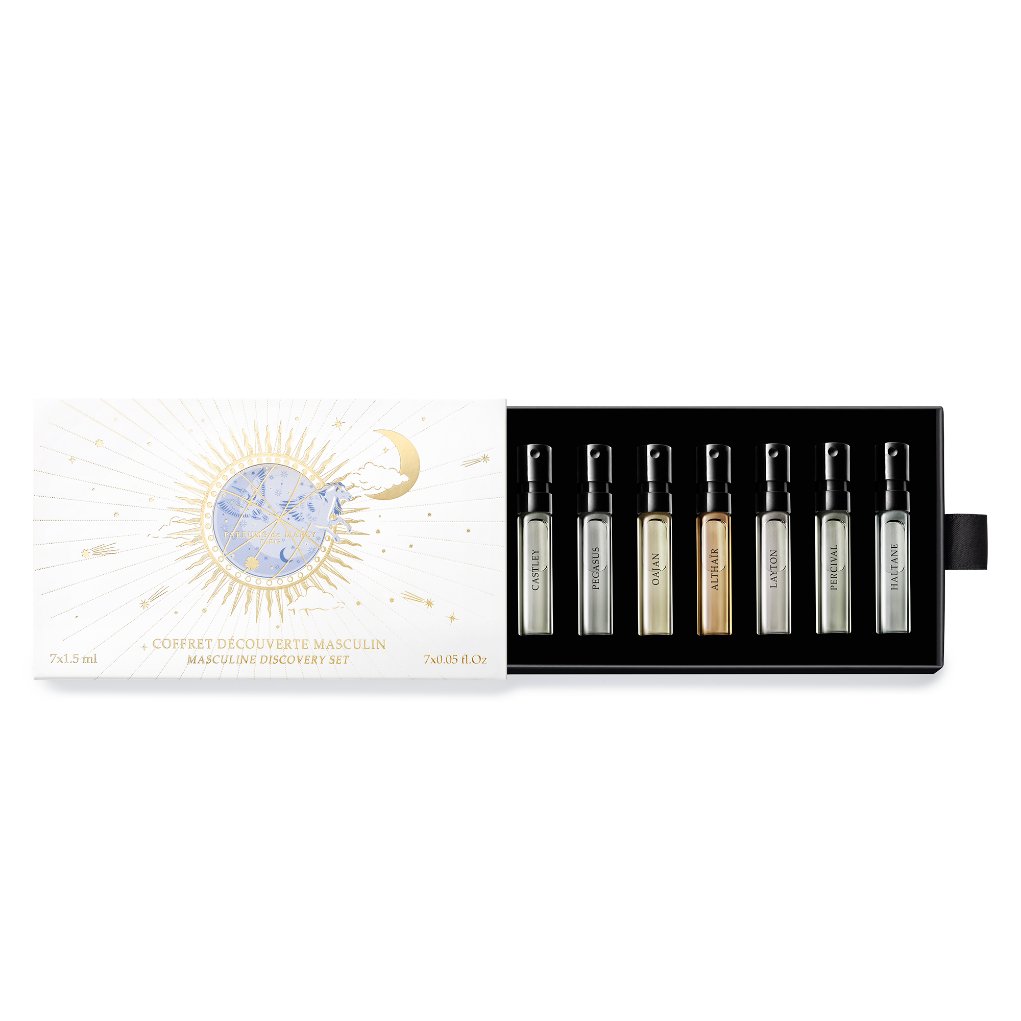 Elegante Männlichkeit in einer sorgfältig zusammengestellten Kollektion. Entdecken Sie die Herrendüfte von Parfums de Marly und erforschen Sie mit dieser individuellen Auswahl von sieben Düften in der 1,5-ml-Größe ihre olfaktorischen Geschichten. Ob Tag oder Nacht – das Set bietet für jede Gelegenheit einen einzigartigen Duft. Jedes maskuline Eau de Parfum beweist eine kühne und subtile Eleganz, darunter auch die ikonischen Düfte der Maison: Castley, Althaïr, Haltane, Layton, Pegasus, Percival und Oajan.