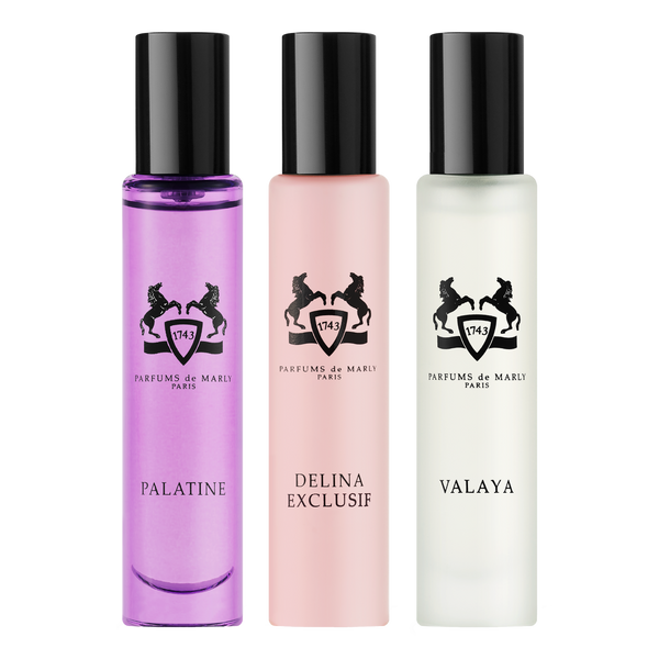 - Découverte 3x10ml (Palatine, Valaya, Delina Exclusif),les signatures olfactives de la Maison, à la fois élégantes et audacieuses.