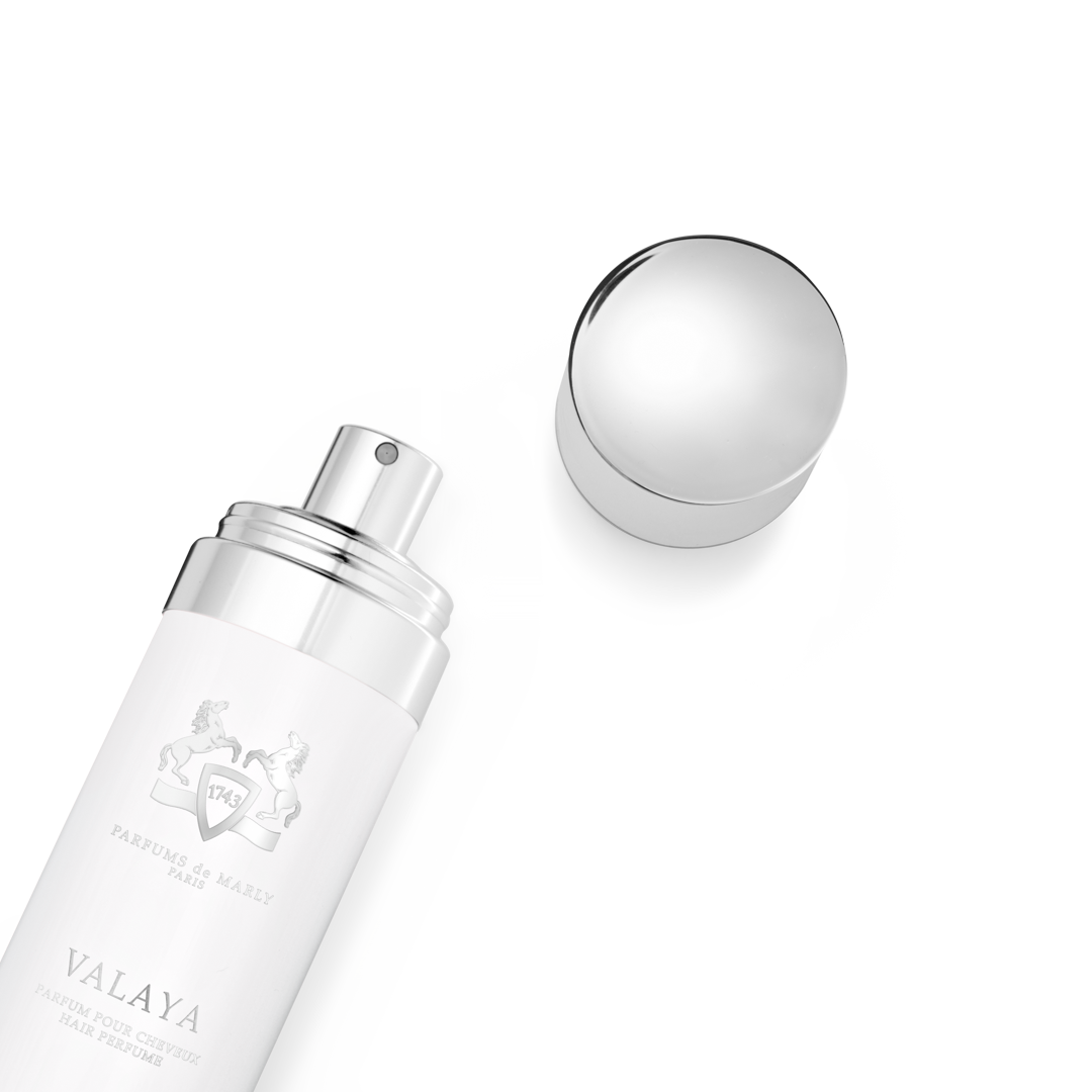The Valaya Hair Mist perfumes your hair with the delicate notes of the Valaya perfume. A radiant aura and yet, an impalpable softness. Fresh notes of bergamot, mandarin, and sweet white peach lead to a heart of orange flowers, settling on musk and woody base notes. Gently spray the light mist directly onto the hair or onto a hairbrush. Its small and handy format makes it easy to slip into a purse. The perfect accompaniment to the Valaya eau de parfum.